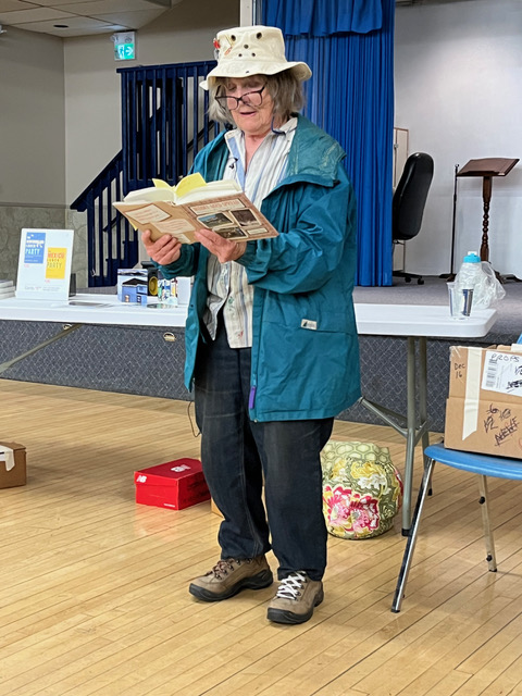 Speaking to Durham Hort Society in June, 25. I’m dressed up as Deirdre the Hoity Hort, a character from my popular memoir, Middle-Aged Spread: Moving to the Country at 50.